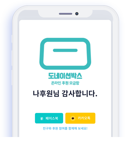 도네이션박스를 이용하여 쉽고 빠르게 회원 가입 URL, 모금함 채널, 온라인 모금함을 친구와 공유할 수 있습니다.