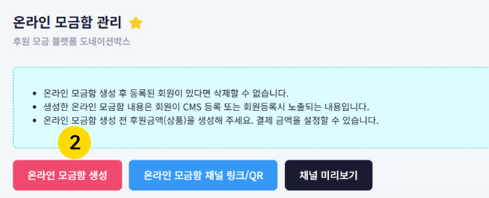 2. 온라인 모금함 생성을 선택합니다.