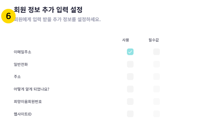 6. 후원자관리를 위한 추가 정보를 생성하고 사용여부를 설정합니다.