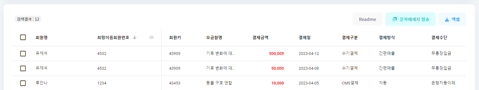 보건복지부 사회보장원 시스템 희망이음에 후원자 결제 내역을 업로드
