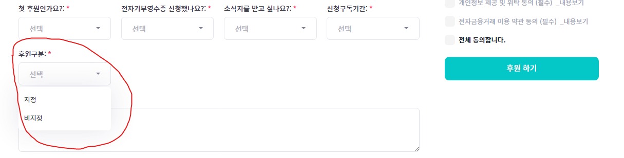 하나의 모금함에서 후원자가 직접 지정, 비지정을 선택하게 하는 경우 사용할 수 있는 설정 방법입니다.