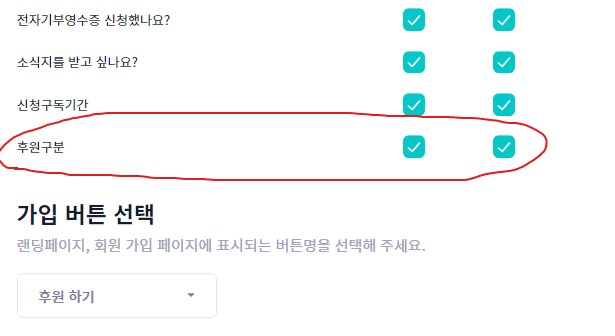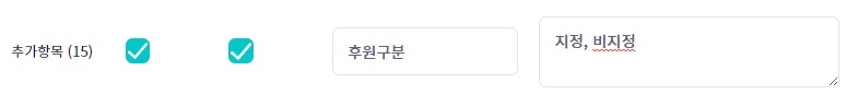 환경설정 회원 정보 추가 항목에 후원구분을 지정과 비지정으로 저장합니다.